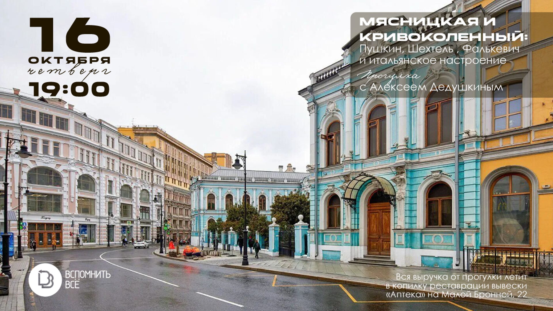 Уютный ламповый Кривоколенный и звонкая дерзкая Мясницкая – один из самых любимых контрастов московского центра. Погуляем там вместе с Алексеем Дедушкиным по переулкам, стилям, историям и векам.